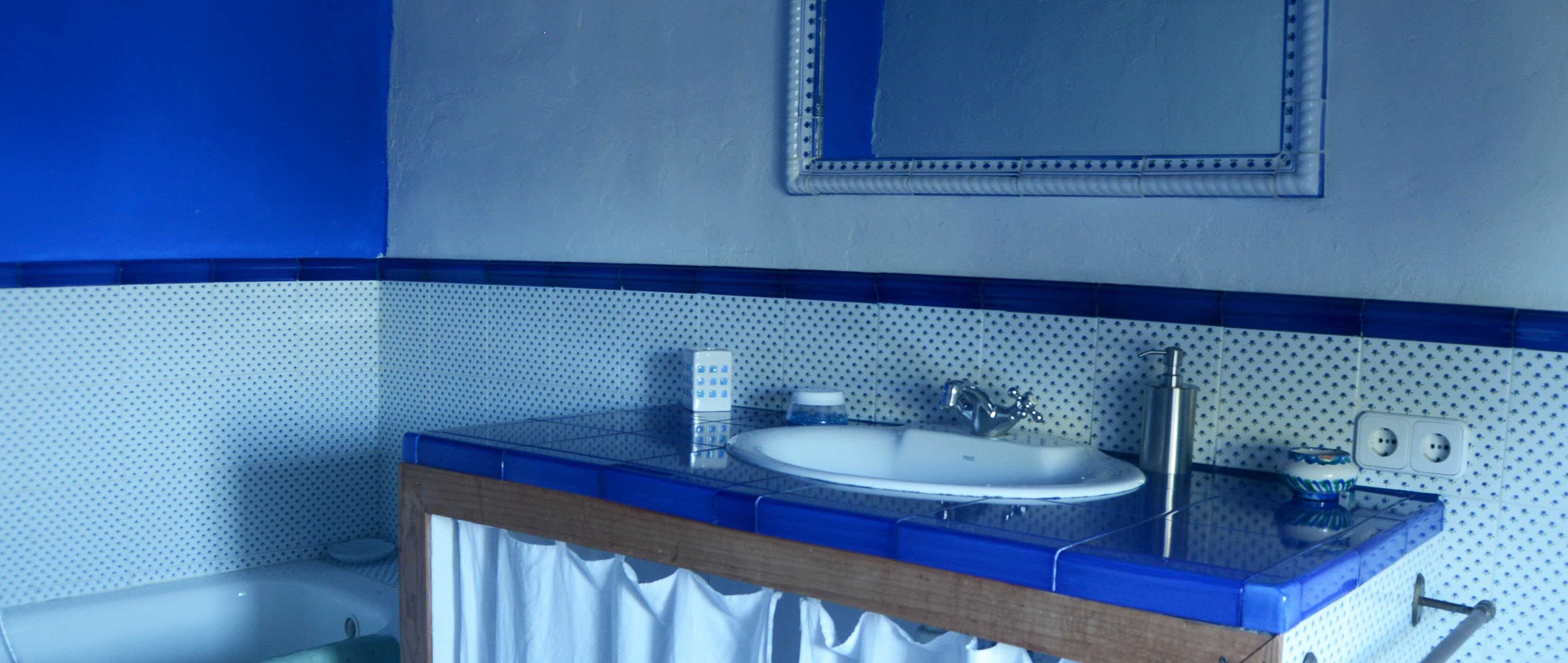 Bathroom 4 – Ensuite to blue bedroom with bath, washbasin and toilet.